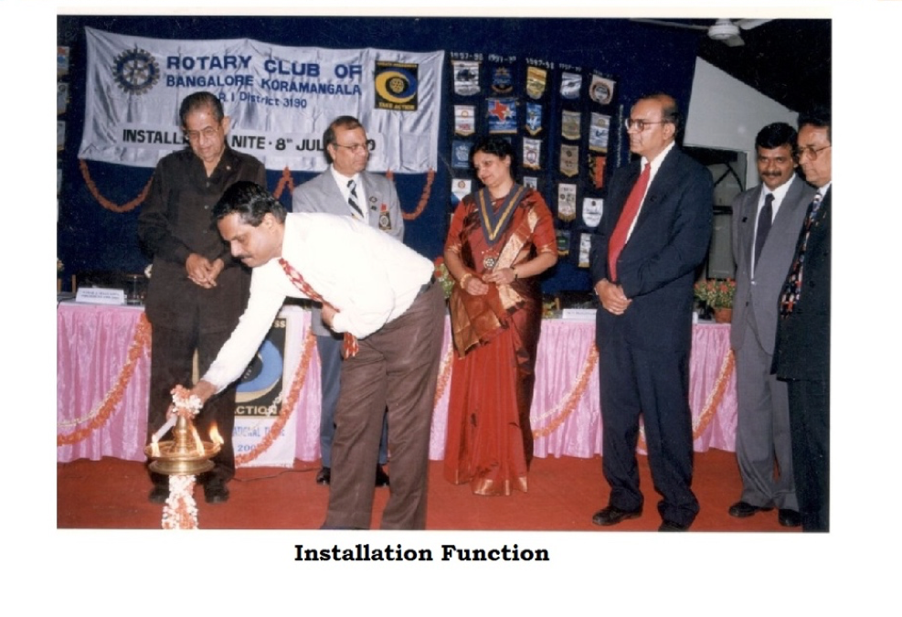 The d-day was on Saturday, 8th July 2000 and the venue was Wodeyar Hall, Century Club, situated inside Cubbon Park, right in the heart of Bangalore. On the appointed evening, I was installed as the fifteenth President of Rotary Club of Bangalore Koramangala in the presence of over a hundred guests made up mainly of our club members and their families, invited Rotarians, and a few of my relatives and friends. Apart from installing the new board members, the District Governor inducted five new members. Three service projects were launched and the souvenir cum club directory was formally released.